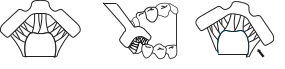- Las cerdas orientadas en ángulo limpian a lo largo de la línea de las encías.